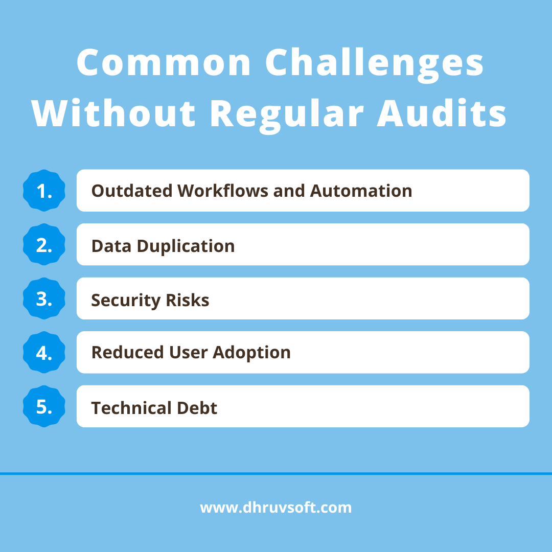 Neglecting CRM audits can slowly erode system efficiency and business confidence. Below are some common challenges organizations face when they overlook regular maintenance: