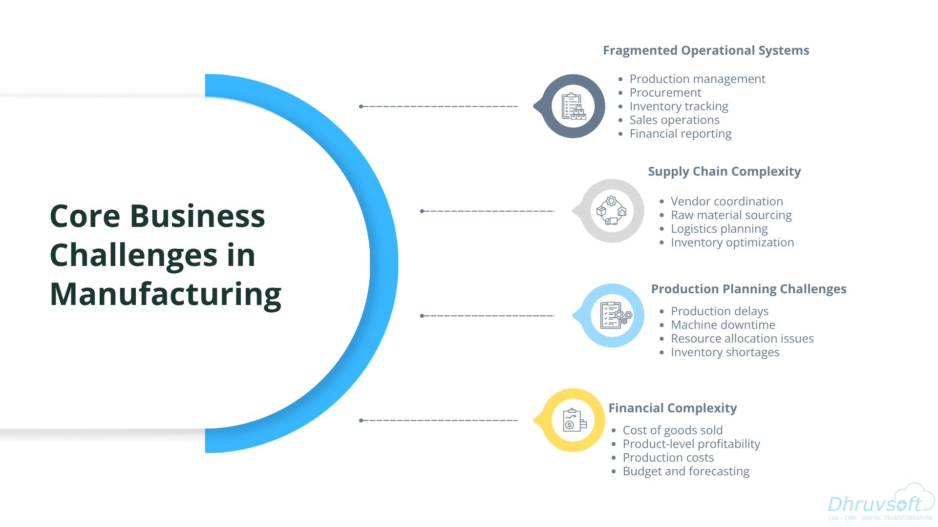 By implementing cloud-based ERP and CRM solutions, Dhruvsoft enables manufacturers to transform fragmented operational systems into connected, data-driven manufacturing ecosystems.