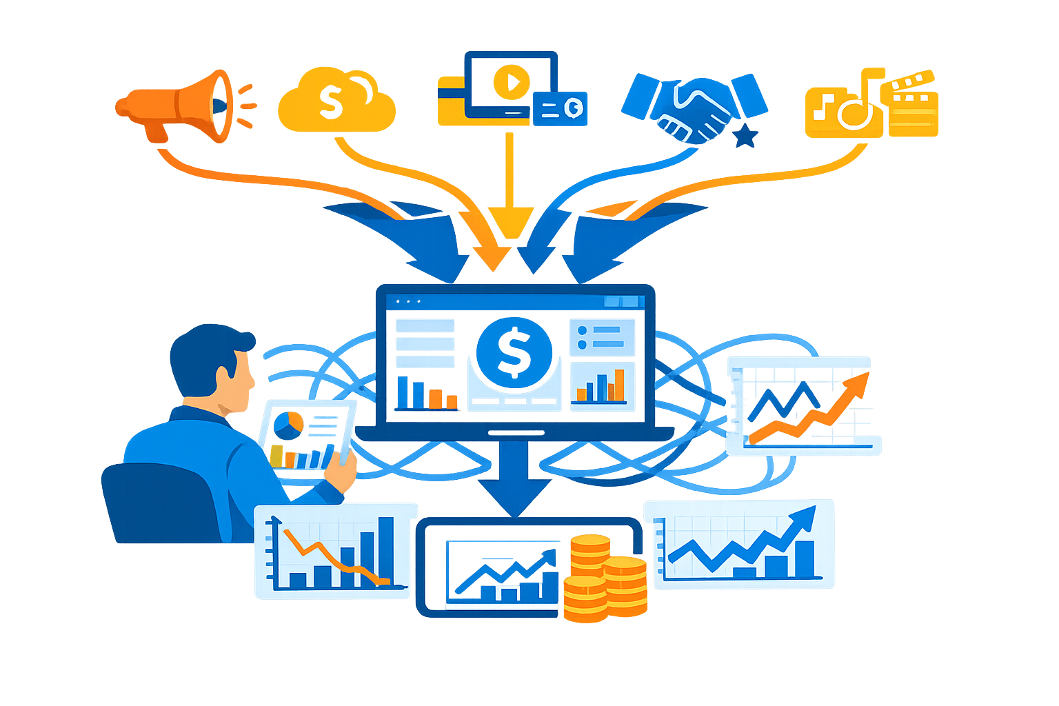 Media and Entertainment companies must track revenue streams from multiple sources, including: