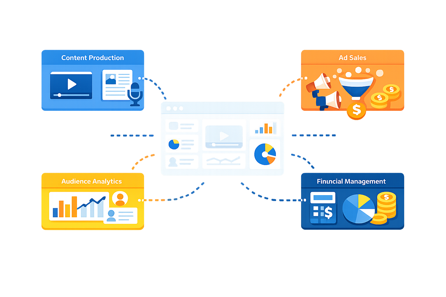 We design & implement secure, scalable digital ecosystems that connect content management, advertising operations, finance, audience engagement, and analytics into a unified platform.